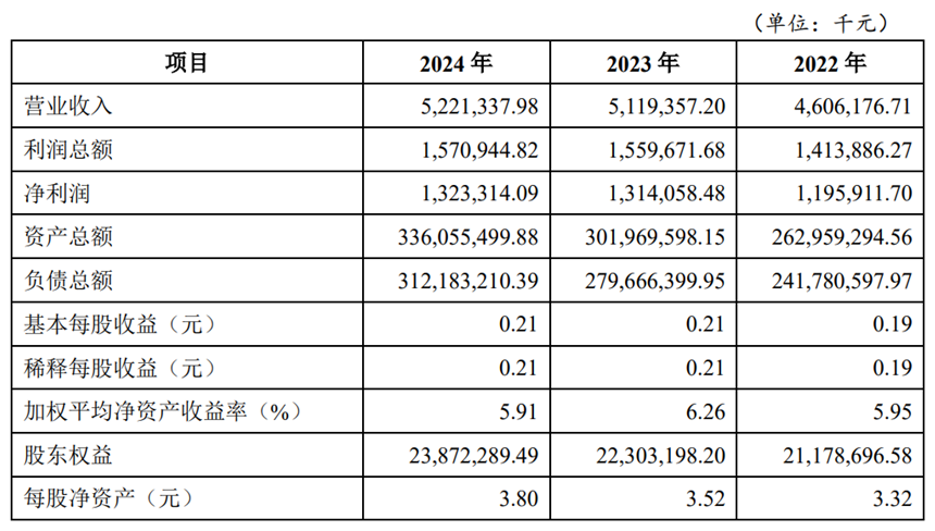 然而,重庆三峡银行的规模扩张与盈利增长,呈现明显的分化态势。公开资料披露,2024年,该行实现营业收入52.21亿元,同比增长1.99%;净利润13.23亿元,同比仅微增0.7%。这两项指标增速较2023年的11.14%、9.88%出现大幅回落。