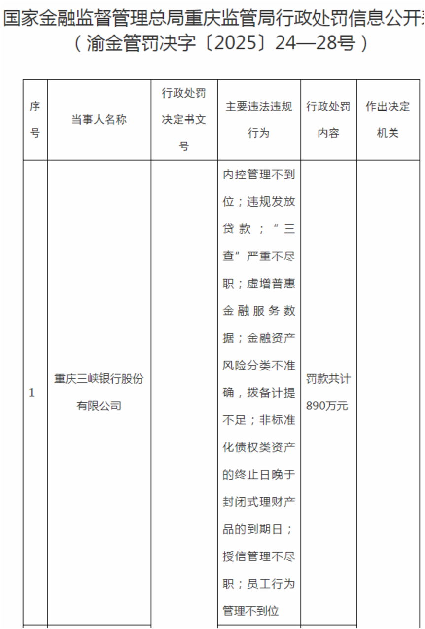 2025年12月12日,国家金融监督管理总局重庆监管局一纸罚单,将重庆三峡银行推向舆论风暴眼。