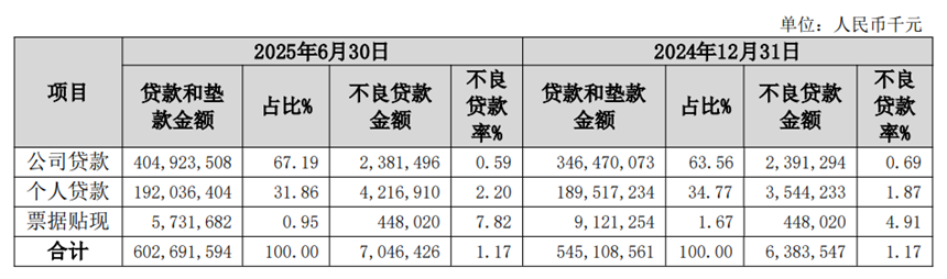 更值得警惕的是票据贴现业务,不良率从2024年末的4.91%飙升至2025年上半年末的7.82%,处于一个较高水平,表明该业务领域风险管控存在严重薄弱环节。