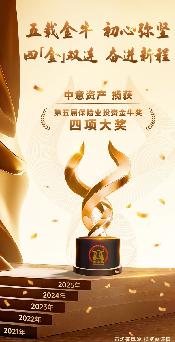 凭借稳健的投资实力,中意资产已连续五年荣获有“资本市场奥斯卡”美誉的“保险业投资金牛奖”,且在2025年的评选中一届揽获四项大奖。这种穿越周期的稳健投资能力,为中意人寿的长期经营分红保险业务提供了坚实支撑。