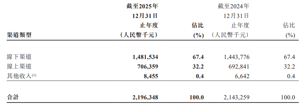从渠道销售划分来看,线下渠道仍是八马茶业的营收基石。财报显示,2025年实现收入14.82亿元,占总营收的67.4%,与2024年占比持平。截至2025年末,八马茶业共有线下门店3773家,较年初净增269家,其中加盟店3538家(占比93.8%),直营店235家,年内加盟店净增283家,直营店反而净减14家——公司持续推进“亏损直营门店关闭”战略,正在加速“轻资产化”转型,将经营风险转嫁给加盟商。经初步测算,单店年均贡献收入从2022年的44.8万元降至2025年的39.28万元,三年下滑超12%。门店数量增长未能带来同比例收入提升,渠道效率正在衰减。