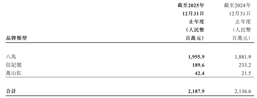 并且公司的多品牌战略同样面临分化困境。财报显示,核心品牌“八马”仍是营收主力,2025年实现营收19.56亿元,同比增长3.9%,占总营收的89.4%;定位年份普洱茶的“信记号”品牌2025年收入为1.90亿元,同比下滑18.7%,反映出普洱茶品类在消费理性化趋势下的整体承压,成为拖累业绩的主要子品牌。