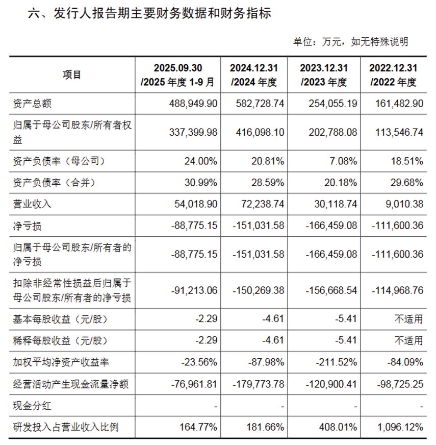 燧原科技是典型的高投入、未盈利硬科技企业。招股书显示,2022年至2025年前三季度,公司营收从0.9亿元增长至5.4亿元,规模扩张速度亮眼。但与之形成鲜明对比的是,公司同期净利润持续为负,累计亏损已经超过51亿元,至今未能实现单季度盈利。