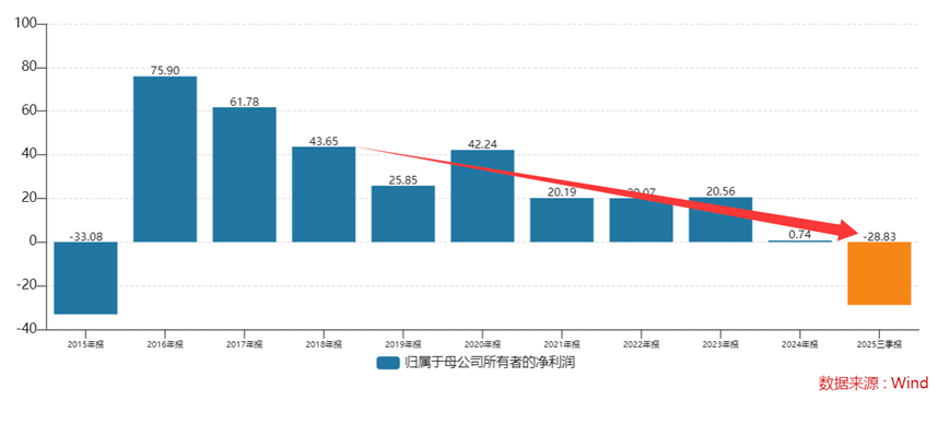 2025年三季报显示,公司今年前三季度营业收入258.34亿元,同比下降12.38%;归母净利润75.70亿元,同比暴跌28.83%;扣非净利润74.63亿元,同比下降28.5%。