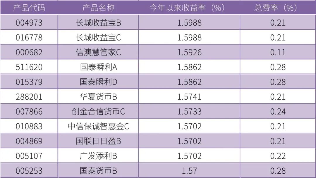 此外,如果想要寻找更高收益率的货币基金,可以跳出余额宝、零钱通的范畴,不通过两者直接去购买,你将会有更宽裕的选择。以下为今年以来收益率超过1.57%的货币基金,可供参考——但切记,收益率仅能作为参考项目,并不能代表这只产品未来也一定会有这样良好的表现。