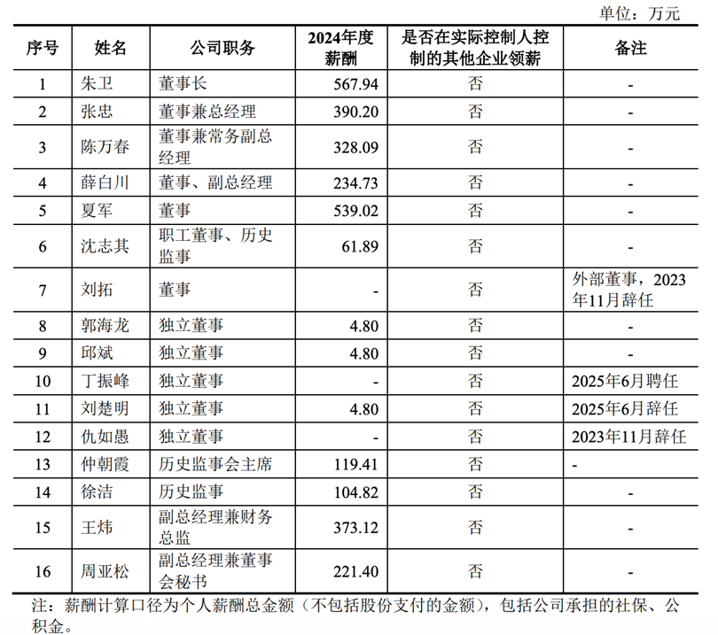 其中,2024年公司9名核心高管薪酬合计达2878.73万元,董事长朱卫薪酬567.94万元,董事夏军薪酬539.02万元,总经理张忠薪酬390.2万元,财务总监王炜薪酬373.12万元,一众高管人均薪酬超300万元。在公司业绩依赖单一业务、经营压力与日俱增的背景下,高管薪酬的逆势上涨,不仅摊薄了公司的利润空间,也让市场质疑其薪酬体系的合理性与激励机制的有效性。