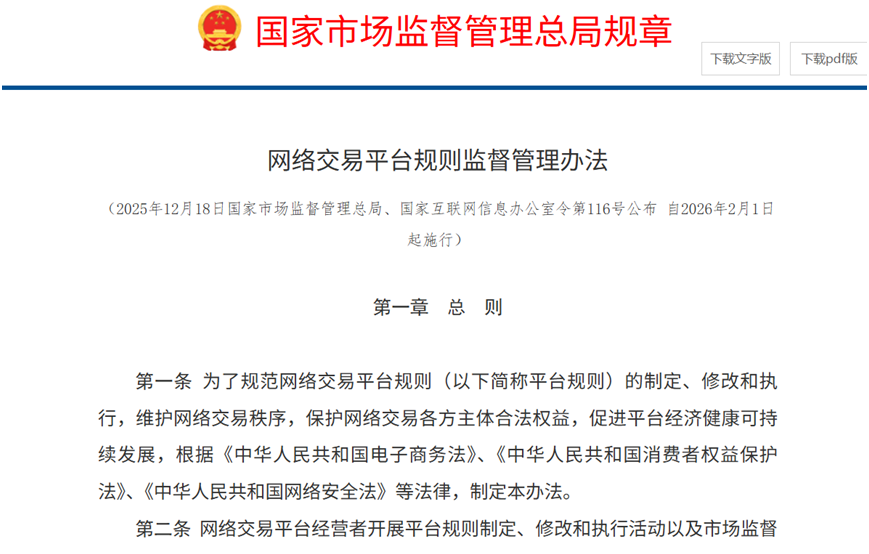 从监管层面看,2025年以来,市场监管总局、国家网信办等部门密集出台政策,强化电商行业监管。2026年1月,两部核心规章《网络交易平台规则监督管理办法》《直播电商监督管理办法》正式落地,明确禁止平台不合理罚款、减损会员权益、虚假营销等行为,将数字人直播、流量管控纳入监管范围。