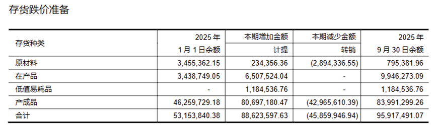 存货跌价风险同样突出,跌价准备从2022年300万元飙升至2025年9月末的9591.75万元,占比达20.49%,相当于每5元存货就有1元可能减值。