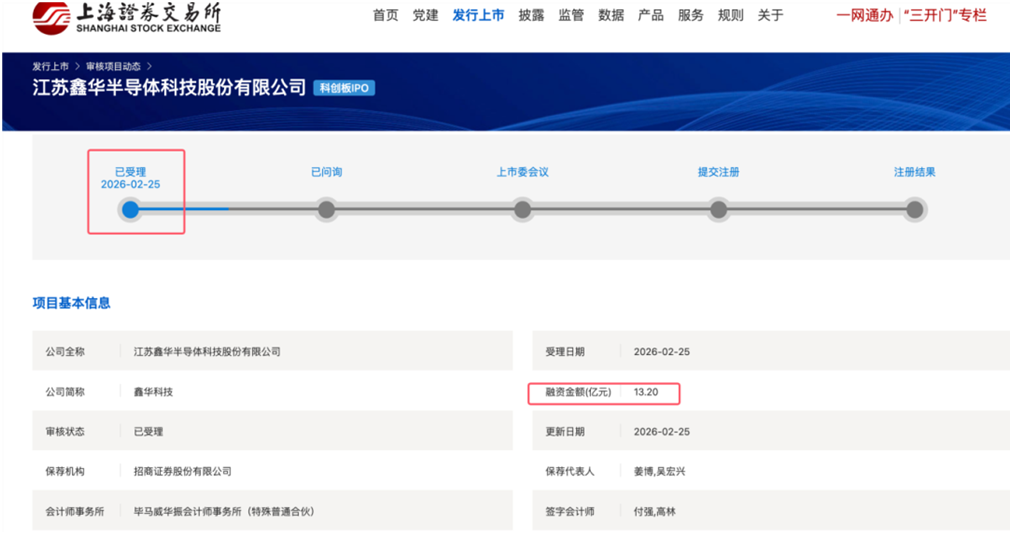 2026年2月25日,江苏鑫华半导体科技股份有限公司(下称“鑫华半导体”)科创板IPO获受理,成为马年首单半导体IPO。