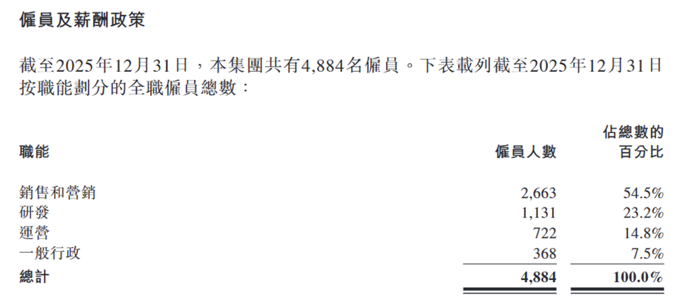 费用压缩的直接结果是人员规模大幅缩减。截至2025年末,公司员工总数从2024年末的5688人降至4884人,全年净裁员804人,缩减比例高达14%。从岗位结构看,裁员覆盖全职能,运营岗位受冲击最显著,人数从1008人锐减至722人,裁员率28.4%。