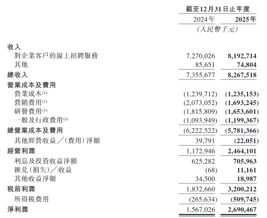 2025年BOSS直聘的财务表现呈现“营收稳健增长、利润爆发式提升”的特征,但这份高盈利并非完全来自业务扩张,而是以大规模人员收缩、费用全面压缩为代价,增长模式的可持续性存疑。