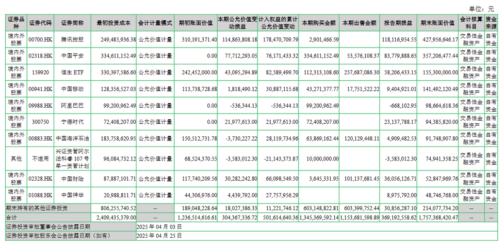 从投资收益构成来看,公司2025年通过持有及处置金融资产获得收益约3.74亿元,重仓腾讯控股、中国平安、宁德时代等标的,其中8只重仓标的实现正收益,合计投资收益达3.69亿元。