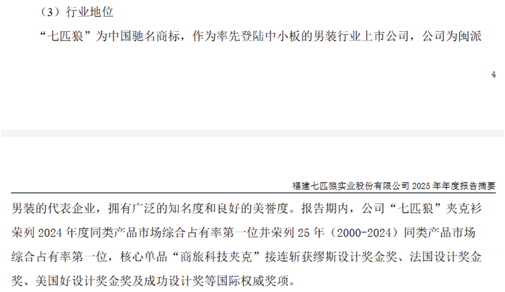 相较于同行,七匹狼既缺乏海澜之家的渠道规模优势,也没有报喜鸟的高端品牌溢价,更不及新兴品牌的年轻化运营能力,在“轻奢及高端市场与性价比市场两端增长、中间地带承压”的行业分化趋势中,公司正处于被边缘化的风险中。(《理财周刊-财事汇》出品)