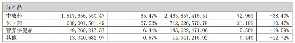 若按产品划分,旗下分为中成药、化学药、营养保健品等。其中,中成药是绝对的营收支柱,2025年占比65.47%。然而,正是这根“顶梁柱”出现了最严重的裂痕。